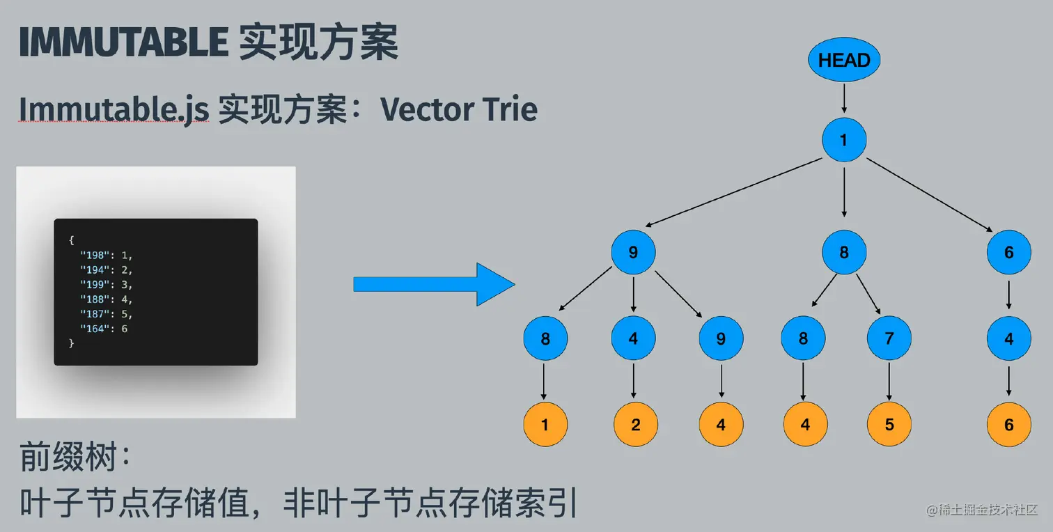 这是一篇关于 Immutable.js 的文章,就像标题写的那样,不涉及 Immutable.js 的使用方式,只关注 Immutable.js 实现 persistent 的原理。