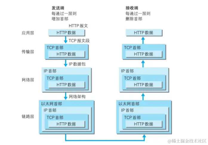 一**、3项WWW构建技术**: 1.作为页面的文本标记语言的HTML 2.作为文档传递协议的HTTP 3.指定文档所在地址的URL(Uniform Resource Locator,统一资源 定位符) WWW这一名称,是Web浏览器当年用来浏览超文本的客户端应用程序时的名称。现在则用来表示这一系列的集合,也可简称为Web。 ** 二、**TCP/IP协议族按层次分别分为以下4层:应用层、传输层、网络层和数据链路层。 1.应用层:应用层决定了向用户提供应用服务时通信的活动。包含FTP,DNS,HTTP 2.传输层:传输层对上层应用层,提供处于网络连接中的两台计算机之间的数据传输。 在传输层有两个性质不同的协议:TCP(Transmission Control Protocol,传输控制协议)和UDP(User Data Protocol,用户数据报协议)。 3.网络层(又名网络互连层):网络层用来处理在网络上流动的数据包。数据包是网络传输的最小数据单位。该层规定了通过怎样的路径(所谓的传输路线)到达对方计算机,并把数据包传送给对方。 4.链路层(又名数据链路层,网络接口层):用来处理连接网络的硬件部分。 **三.TCP/IP通信传输流: ** 客户端与服务器通信示例图: