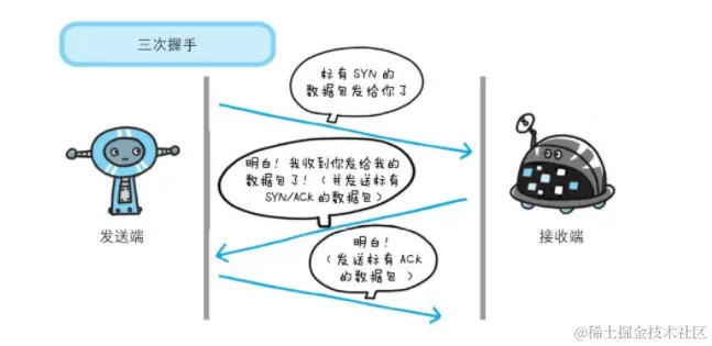 四、字节流服务(Byte Stream Service)是指,为了方便传输,将大块数据分割成以报文段(segment)为单位的数据包进行管理。 五、三次握手(three-wayhandshaking)策略: 用TCP协议把数据包送出去后,TCP不会对传送后的情况置之不理,它一定会向对方确认是否成功送达。握手过程中使用了TCP的标志(flag)——SYN(synchronize)和ACK(acknowledgement)。发送端首先发送一个带SYN标志的数据包给对方。接收端收到后,回传一个带有SYN/ACK标志的数据包以示传达确认信息。最后,发送端再回传一个带ACK标志的数据包,代表“握手”结束。若在握手过程中某个阶段莫名中断,TCP协议会再次以相同的顺序发送相同的数据包。