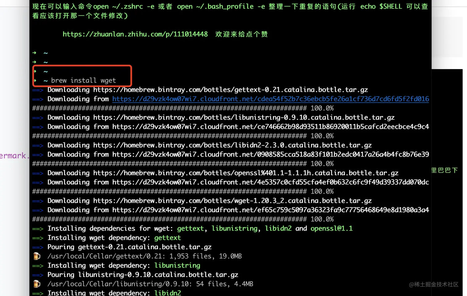 mac 清华源安装brew 嗨好久不见 2020-11-01 807 阅读1分钟 一 使用清华源安装brew mac安装brew很慢,是因为git地址需要外网下,我们可以brew的地址换成清华源就可以很快的下载了。(网上很多教程是改本地git地址的,感觉很麻烦,下面为我亲测可用) 该命令可以将brew源换成清华源,然后再安装 wget即可。 /bin/zsh -c "$(curl -fsSL https://gitee.com/cunkai/HomebrewCN/raw/master/Homebrew.sh)" 之后可以使用brew安装wget了