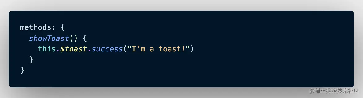 Vue-toastification提供了几种在其文档中使用它的方法。你可以在组件级别,全局级别甚至在Vuex内执行此操作,如果你希望根据状态或与服务器相关的操作显示toasts。