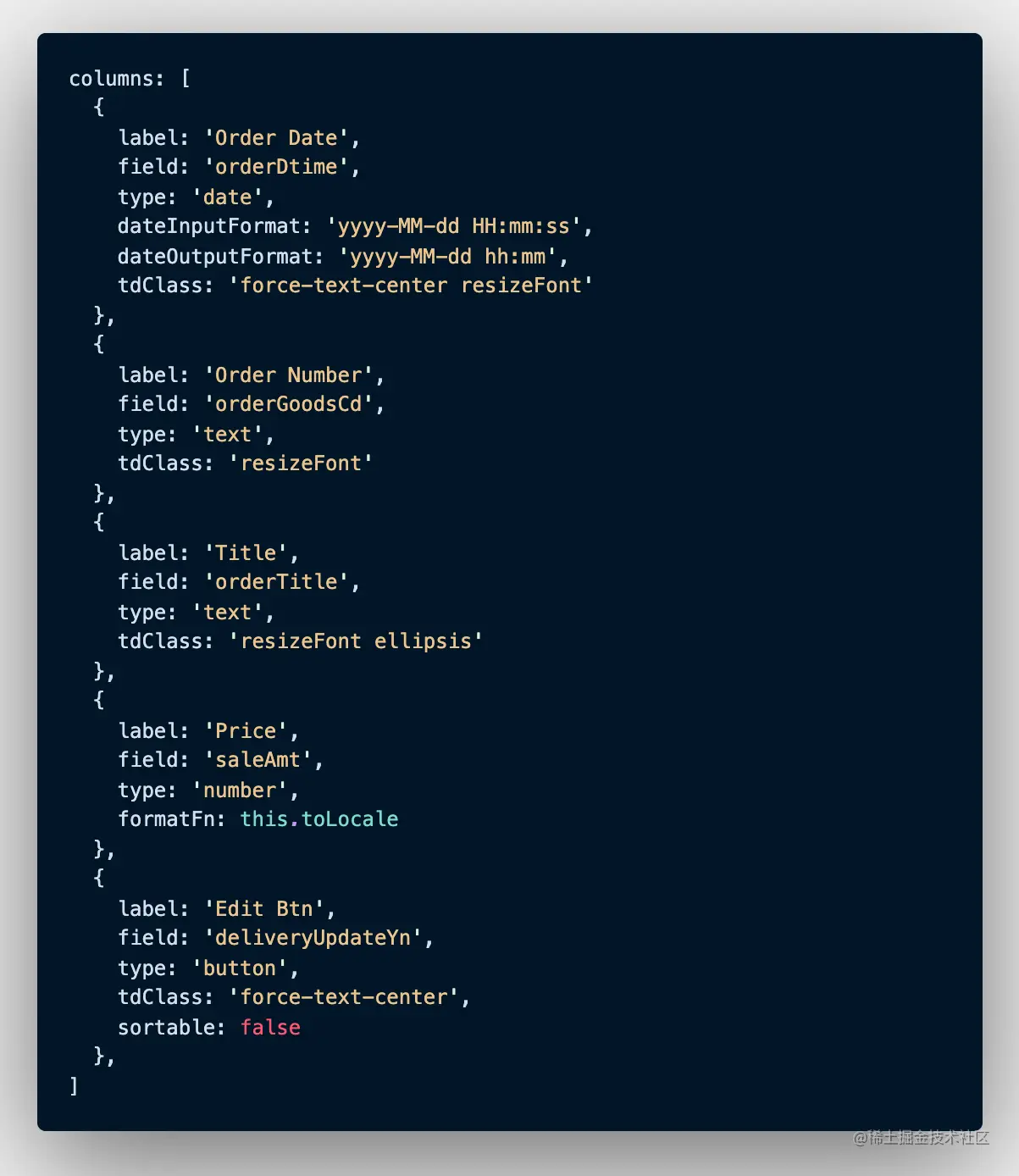 label 是显示的列标题,而 field 是我在Vuex getter中绑定的数据。