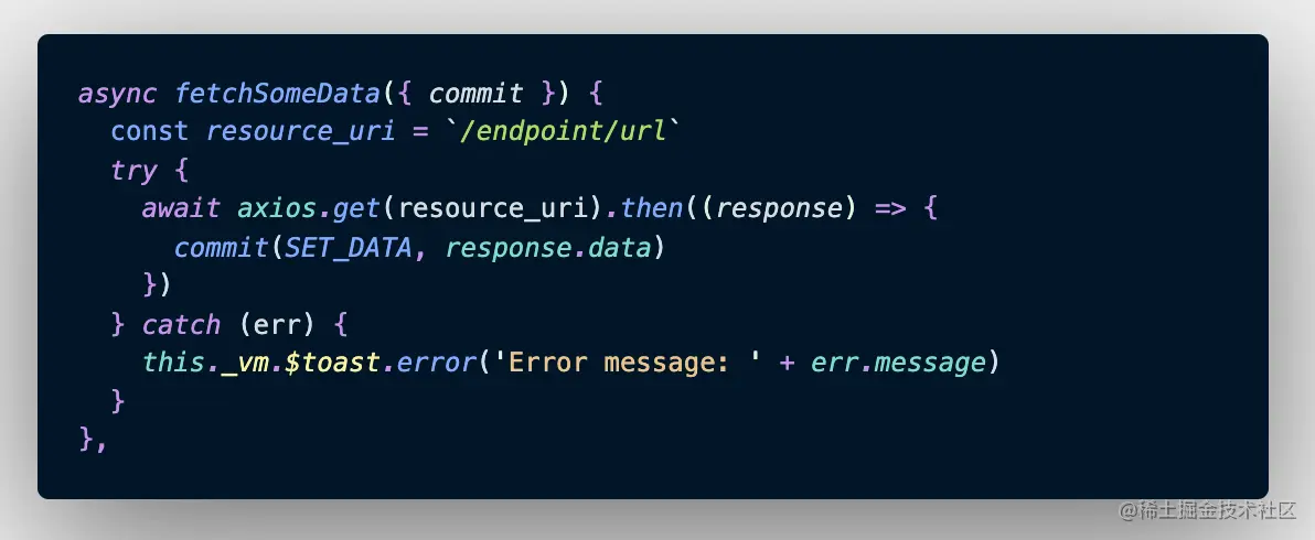 选项2:在Vuex action中发现错误(或成功)时调用Toast