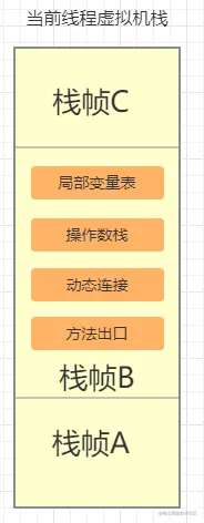 线程私有、生命周期与线程相同。描述的是Java方法执行的线程内存模型:每个方法被执行的时候,都会在Java虚拟机中创建一个栈帧,用于存储局部变量表、操作数栈、动态连接、方法出口等信息。每一个方法被调用到执行完毕的过程,对应着一个栈帧在虚拟计栈中从入栈到出栈的过程。