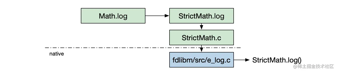 对于StrictMath来说,没有什么黑科技,最终的实现就是e_log.c的ieee754标准实现,是通过C语言实现的,所以在各个平台的表现是一样的,整个流程如图中蓝色部分。感兴趣的同学可以看e_log.c的源码实现即可。