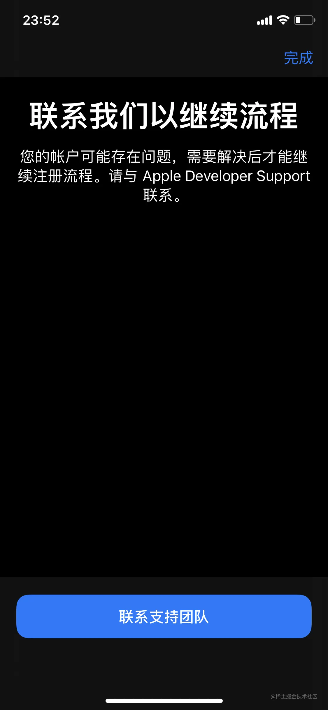 iOS个人开发者账号申请遇到问题 在午睡 2020-11-01 970 阅读1分钟 您的账户可能存在问题 想注册一个个人开发者账号,但是遇到这个问题,这个appleid没有申请过开发者账号,手机也没有申请过,请问有遇到过同样问题的吗?要怎么解决?