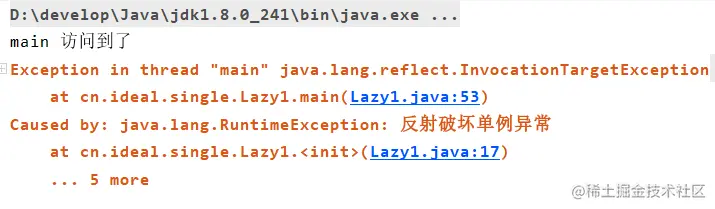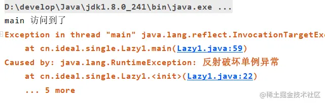 main 访问到了 main 访问到了 cn.ideal.single.Lazy1@1b6d3586 cn.ideal.single.Lazy1@4554617c