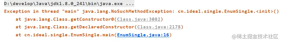 Exception in thread "main" java.lang.NoSuchMethodException: cn.ideal.single.EnumSingle.<init>()
