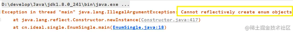 这样就没问题了,提示了我们想要的错误:Cannot reflectively create enum objects