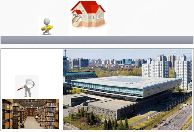 在我们的这个故事中,你是故事的主角。你有一所房子,房子里有一个仆人,他每天帮你处理各种各样的图书数据。但是北京房价太贵,所以你的这个房子很小,只能放的下64本书。你家的马路对面,就是北京图书馆(你家房子虽然小但是地段还不错),你所需要的所有的图书在那里都可以找到。图书馆有个管理员,他负责帮你把你想要的书找出来。