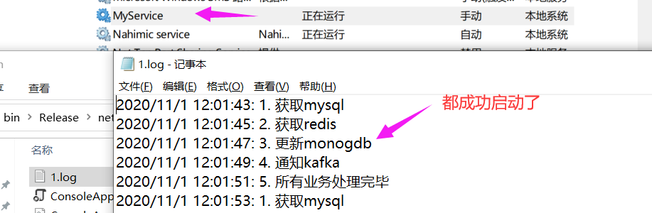 为了验证程序是否运行正常,可以去服务面板以及安装路径查看启动日志。