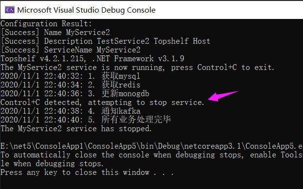 TestService.Log($"{DateTime.Now} 恭喜,Test服务程序已正常退出!");