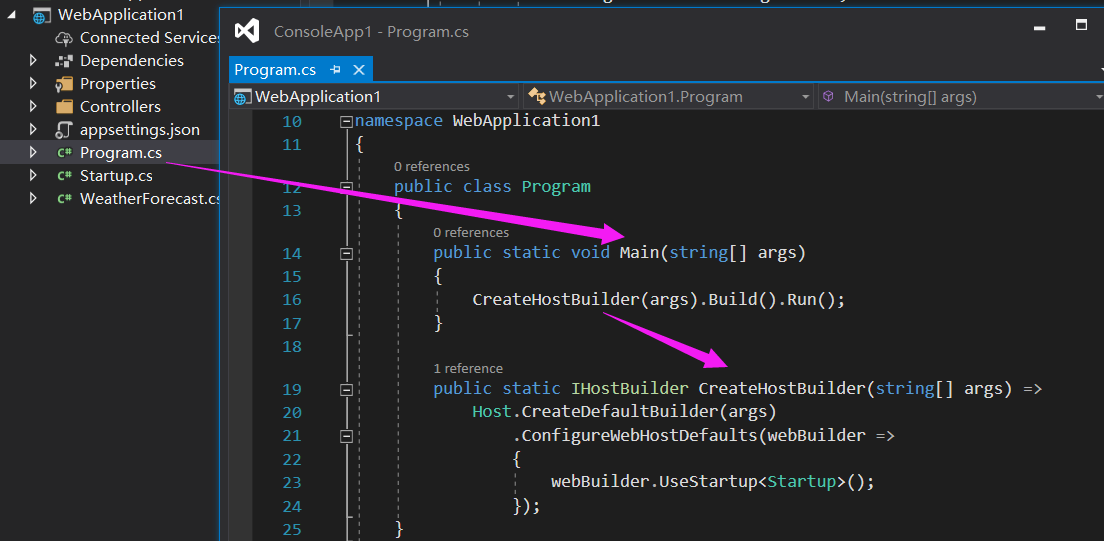 说到这个 Hosting 相信大家不会陌生,在 netcore 中不管是 Console, MVC,WebApi 都是 Console 模式,比如我新建一个如下 WebApi。
