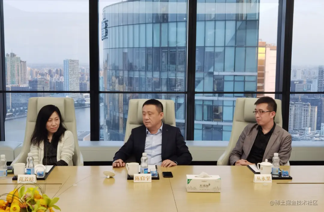 复星首席信息官范若晗(左)、复星国际执行董事 CEO 陈启宇(中)、复星星元总裁丛永罡(右)