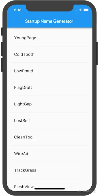 5.如果应用程序正在运行,请使用热重载按钮新正在运行的应用程序。每次单击热重载或保存项目时,都会在正在运行的应用程序中随机选择不同的单词对。 这是因为单词对是在build 方法内部生成的。每次MaterialApp需要渲染时或者在Flutter Inspector中切换平台时build 都会运行.