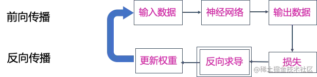 - 反向传播:在这一步中,你可以利用损失反向求导算出每一个参数的梯度。