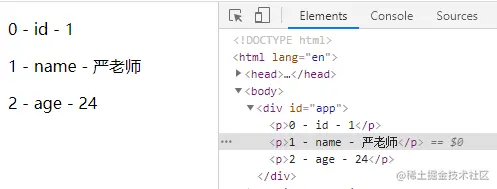 <p v-for="(val, key, index) in info">{{index}} - {{key}} - {{val}}</p>