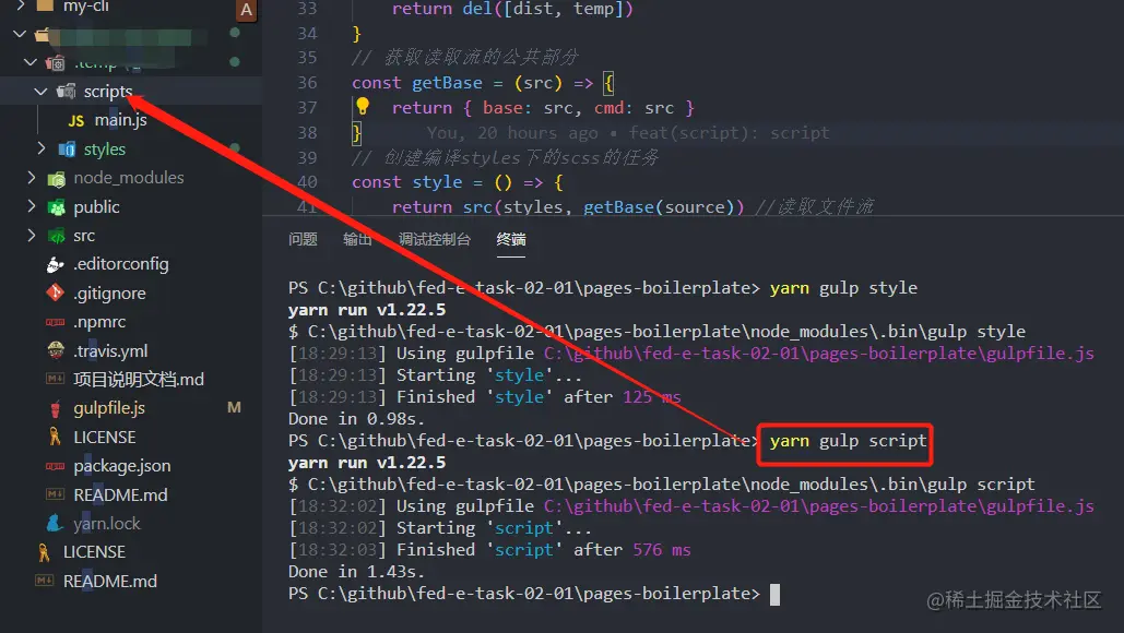 yarn gulp script