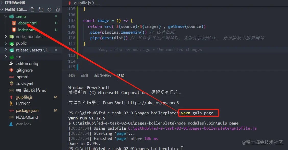 .pipe(dest(temp)) // 写入到temp(半成品)目录下