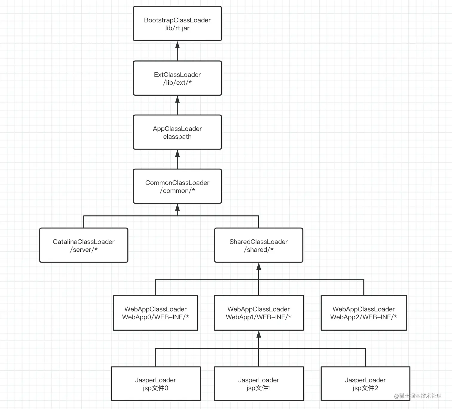 - CommonClassLoader:加载tomcat及各web应用共享的类库 一般在common/*目录下