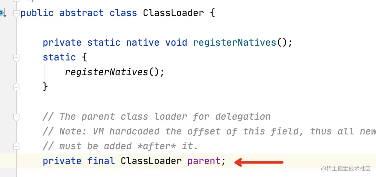 其他类加载器都在java代码中。都继承了ClassLoader抽象类。都有父类加载器(ClassLoader抽象类的parent属性)。如果父类加载器是启动类加载器,则用parent为null表示,比如扩展类加载器。