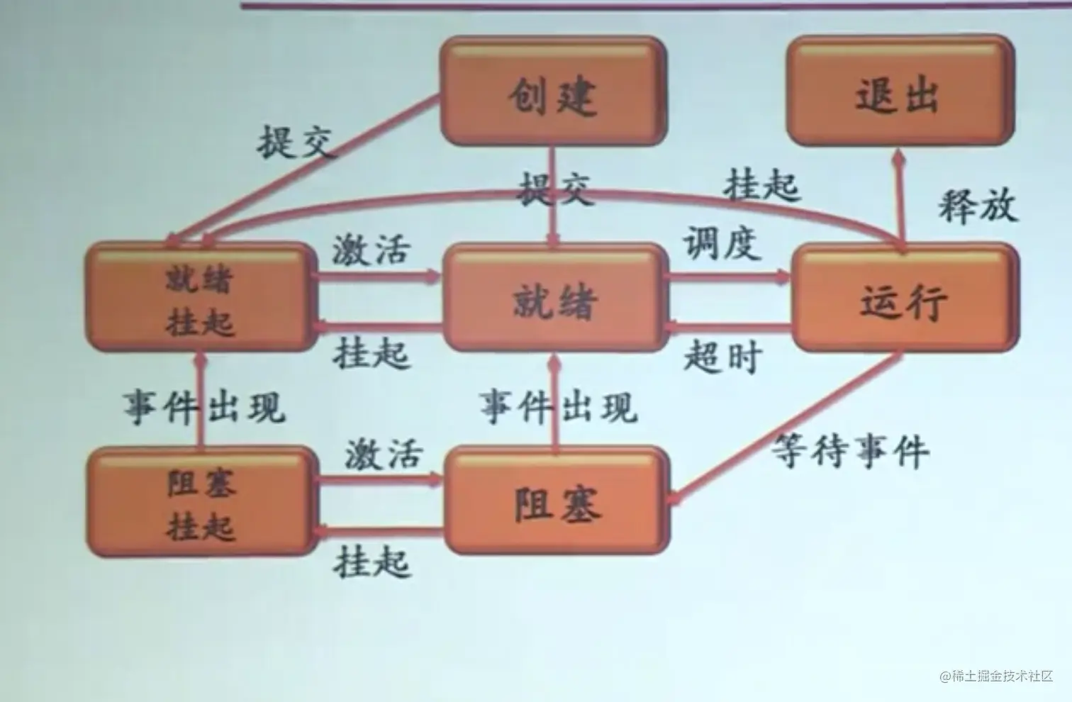 - 将 CPU 硬件状态从一个进程切换到另外一个进程的过程称为上下文切换