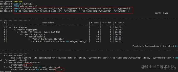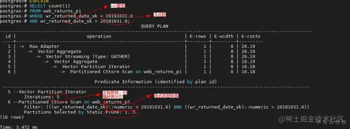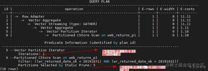 只有查询语句可以进行分区剪枝的时候,分区表查询才会产生数据扫描上的性能收益。一般只有当分区键跟常量值存在直接的比较(>、<、=、<=、>=)操作时,分区表才可以正常剪枝。我们可以通过对查询语句执行explain命令查看分区剪枝的效果