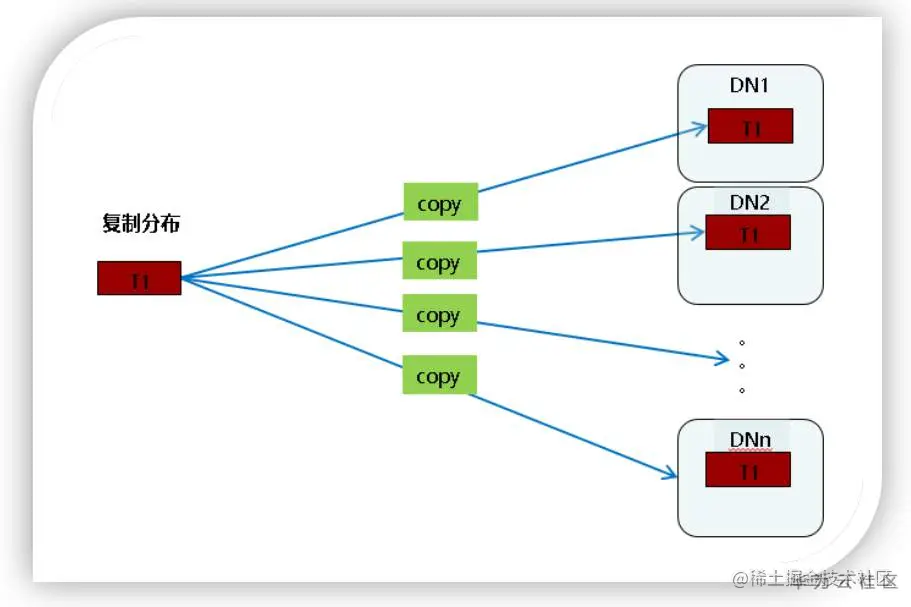复制分布(replication)策略将表中的全量数据在集群的每一个DN实例上保留一份。在关联操作中复制表可以避免数据重分布操作,减小网络开销,同时减少了plan segment(每个plan segment都会起对应的线程)的个数;但是复制分布策略会导致比较严重的数据冗余,因此只有小表才适合复制分布策略。