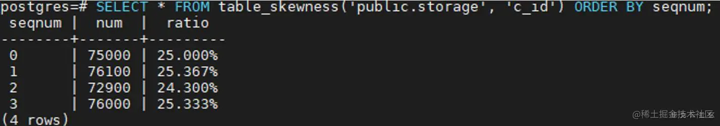 SELECT * FROM table_skewness('public.storage', 'c_id') ORDER BY seqnum;
