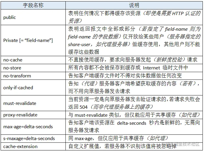 作为响应首部时,cache-directive 的可选值有: