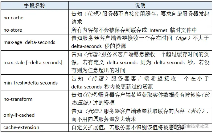 作为请求首部时,cache-directive 的可选值有: