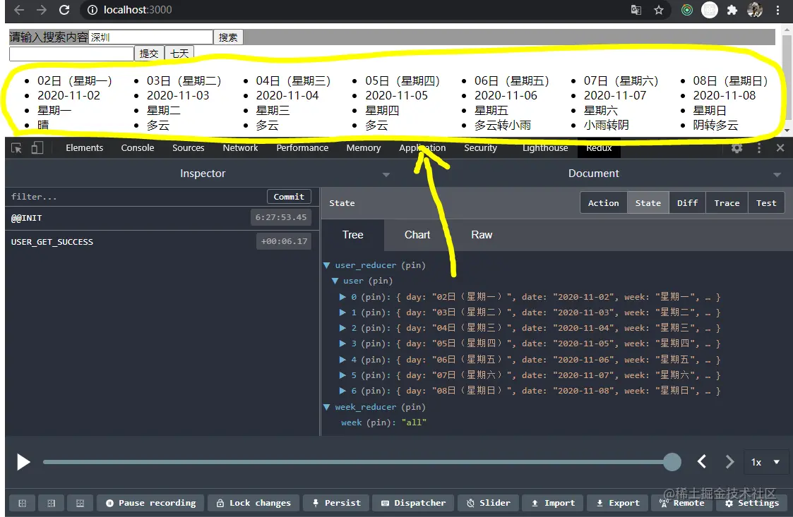 这里是为了做星期筛选准备的,通过获取到week的值来筛选天气信息