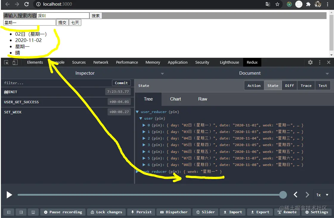 - 第一个调用是传入映射数据的方法和action,第二个调用是传入展示组件