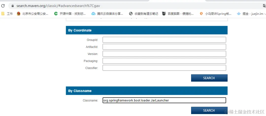 进入 search.maven.org/classic/#ad… 查询JarLauncher