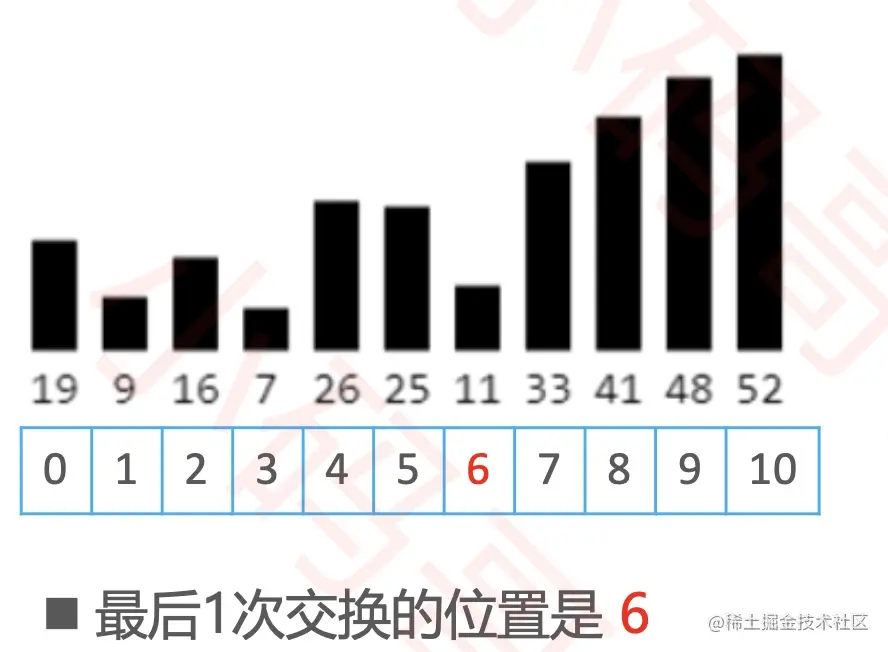 最后一次交换是6,后面的不用比较