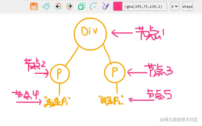 一个标签,一段文本,甚至一个注释都是一个DOM节点,如图所示: