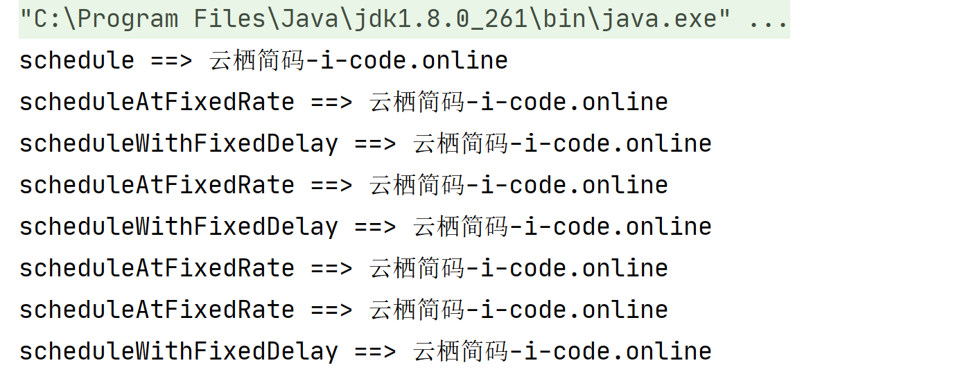 System.out.println("scheduleAtFixedRate ==> 云栖简码-i-code.online");