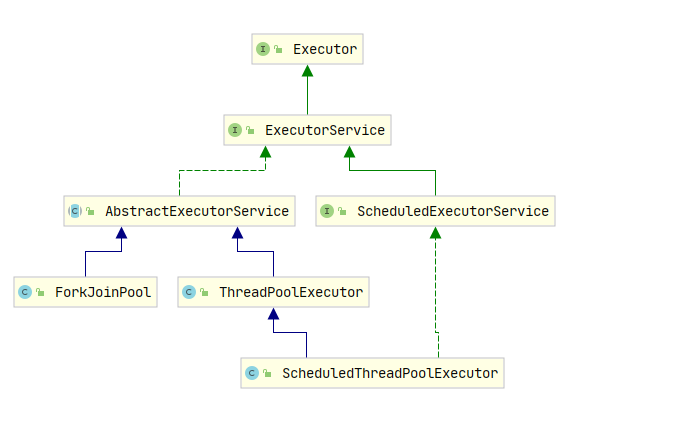 - 在了解集中线程池时我们先来熟悉一下主要几个类的关系,