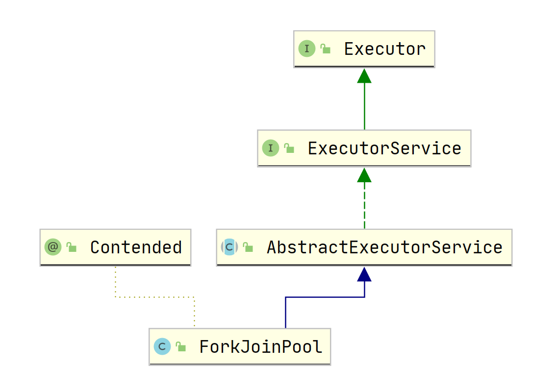 ForkJoinPool这是一个在JDK7引入的新新线程池,它的主要特点是可以充分利用多核CPU, 可以把一个任务拆分为多个子任务,这些子任务放在不同的处理器上并行执行,当这些子任务执行结束后再把这些结果合并起来,这是一种分治思想。ForkJoinPool也正如它的名字一样,第一步进行Fork拆分,第二步进行Join合并,我们先来看一下它的类图结构