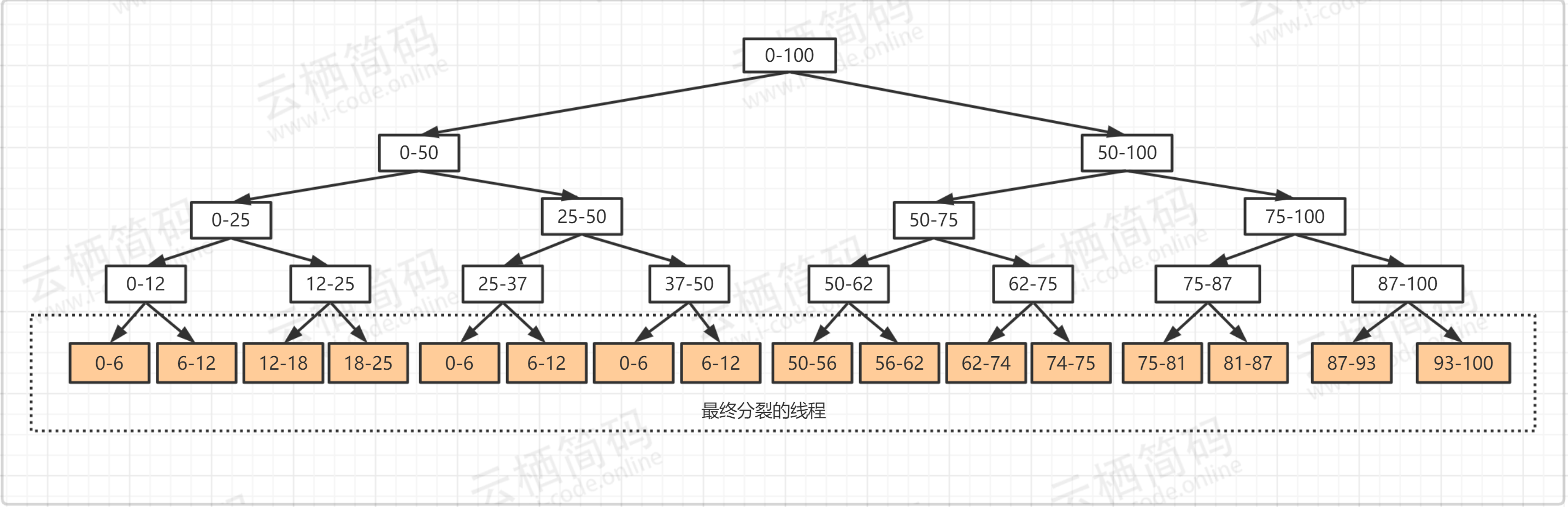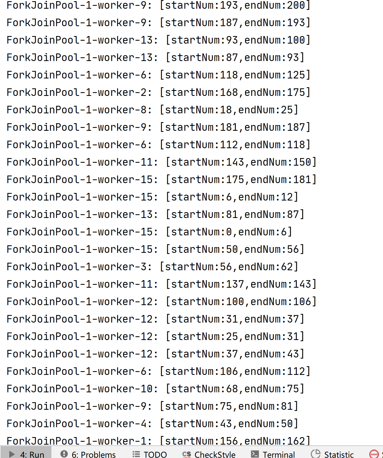 目标: 打印0-200以内的数字,进行分段每个间隔为10以上,测试forkjoin