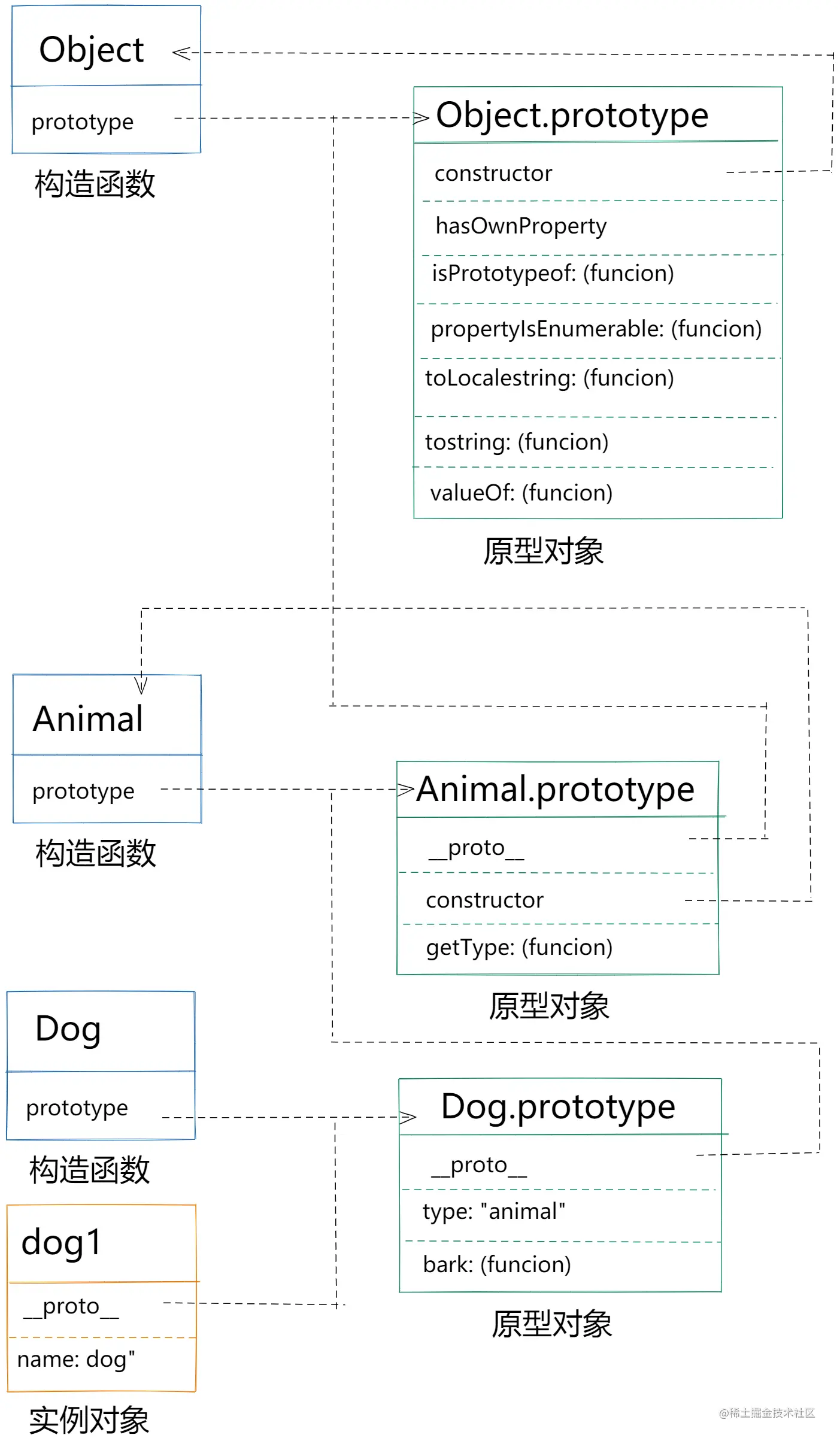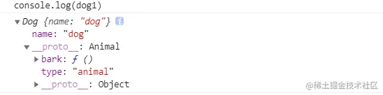 dog1指向Dog的原型,Dog的原型又指向Animal的原型。