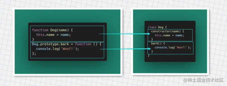 二者实际上仍然以相同的方式工作。类仅是构造函数的语法糖!
