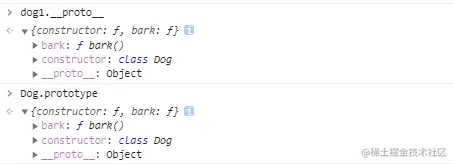 console.log(dog.__proto__ === Dog.prototype); //=> true