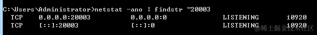 netstat -ano | findstr "20003"