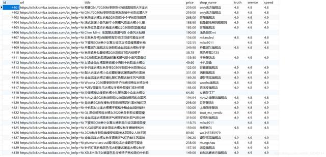 sql = "insert into commodity(id,url,title,price,shop_name,truth,service,speed) values(null,%s,%s,%s,%s,%s,%s,%s)"