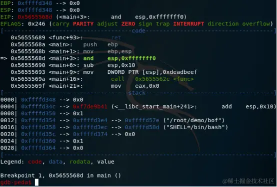 可以看到0xdeadbeef在0xffffd330,而我们输入的A是从0xffffd2fc开始