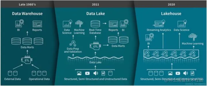 图2从DataLake进化到LakeHouse,数据湖扩展数仓能力