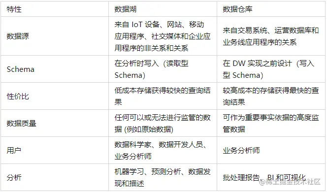 纵观数据湖与数据仓库的技术发展,不难发现两者有着各自的优劣,具体表现如下: