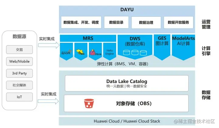 运营管理层:通过DAYU实现了湖&仓统一的数据集成、开发、目录、治理、开放服务等的运营管理: