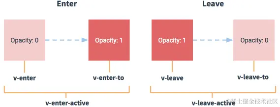 v-enter: v指元素的name属性,如xxx-enter,不设置的话默认为transition内所有的元素
